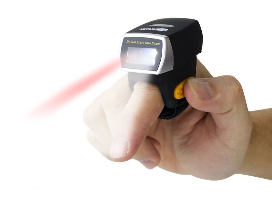 - Міні сканер-кільце для зчитування штрих кодів, одягається на палець і передає дані на пристрій по радіоканалу