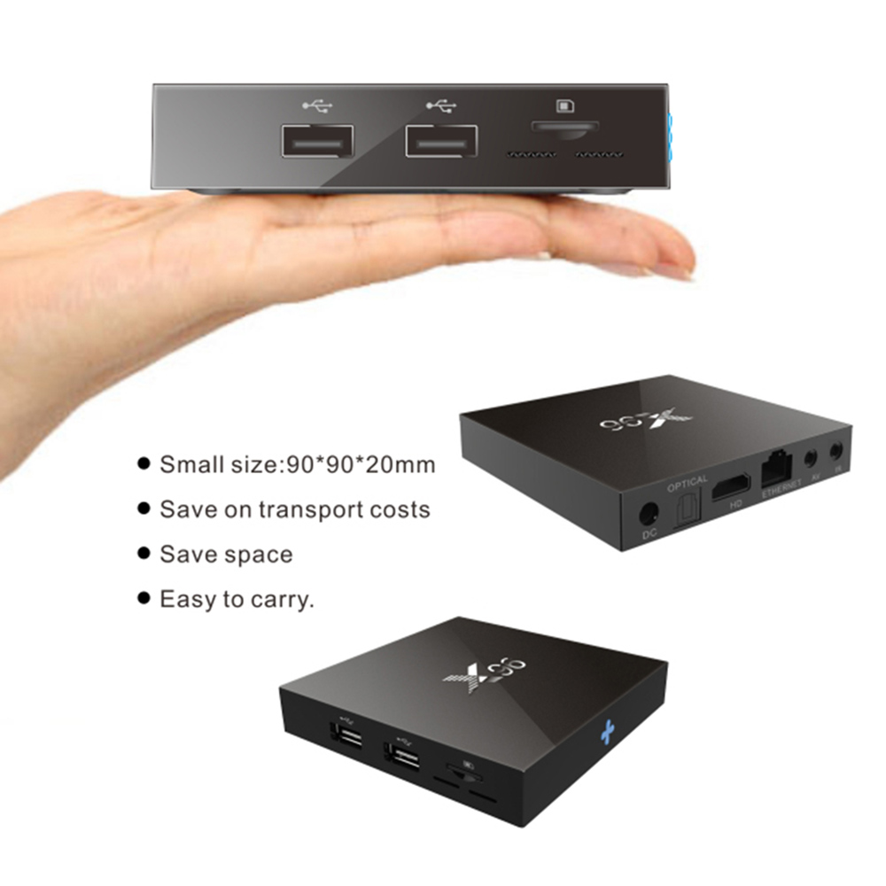 MXQ X96 — це багатофункційний HD-медіаплеєр. Перевагою якого є підтримка роздільної здатності Ultra HD 4K. Високу продуктивність і багатозадачність забезпечує 4-ядерний 64-бітний процесор Amlogic S905X із частотою 2.0 ГГц.